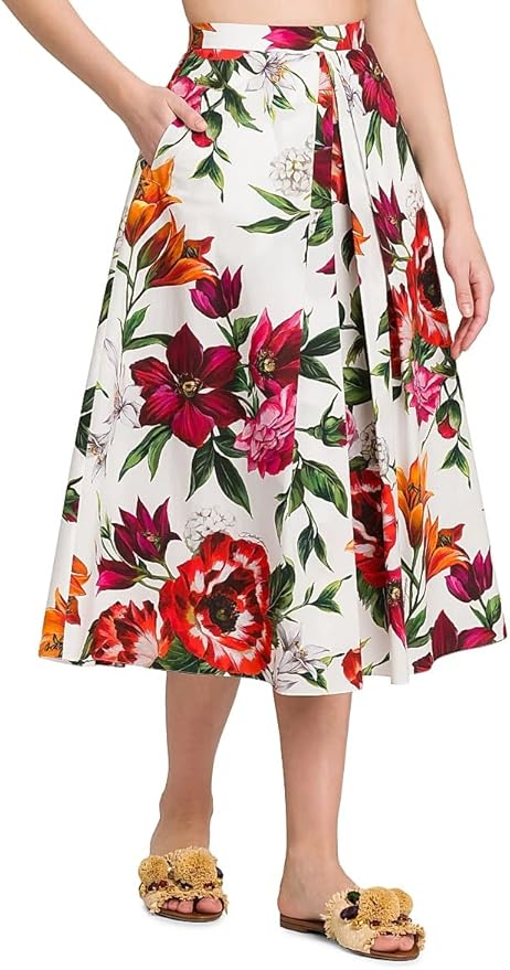 Rafia Fiori Floral Pleated Cotton Poplin Midi-Skirt
